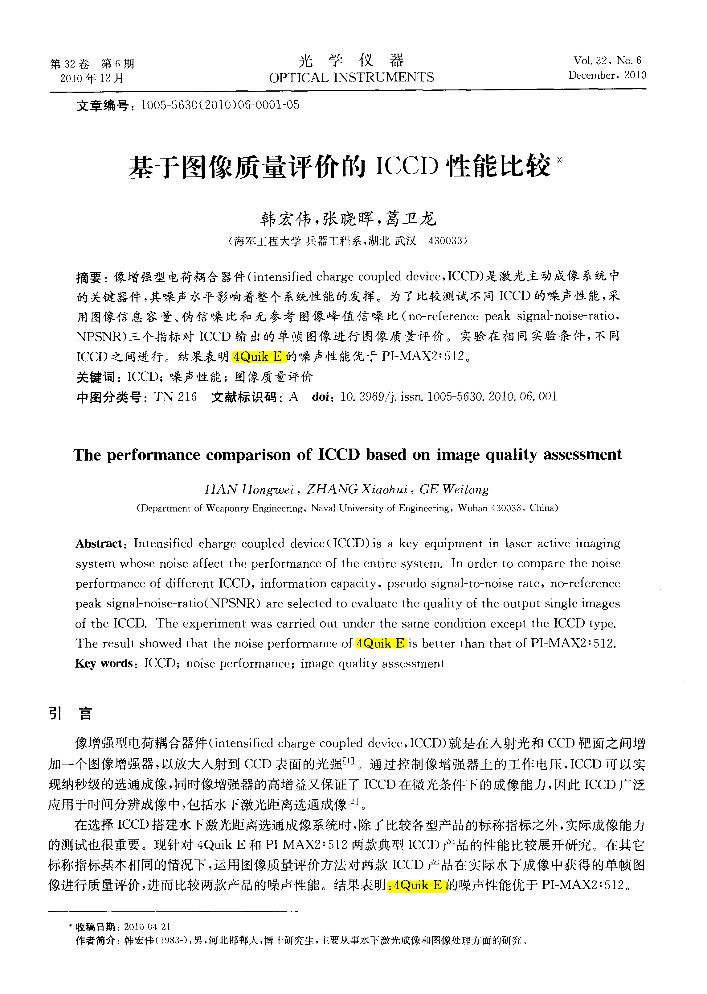 基于圖像質(zhì)量評(píng)價(jià)的ICCD性能比較