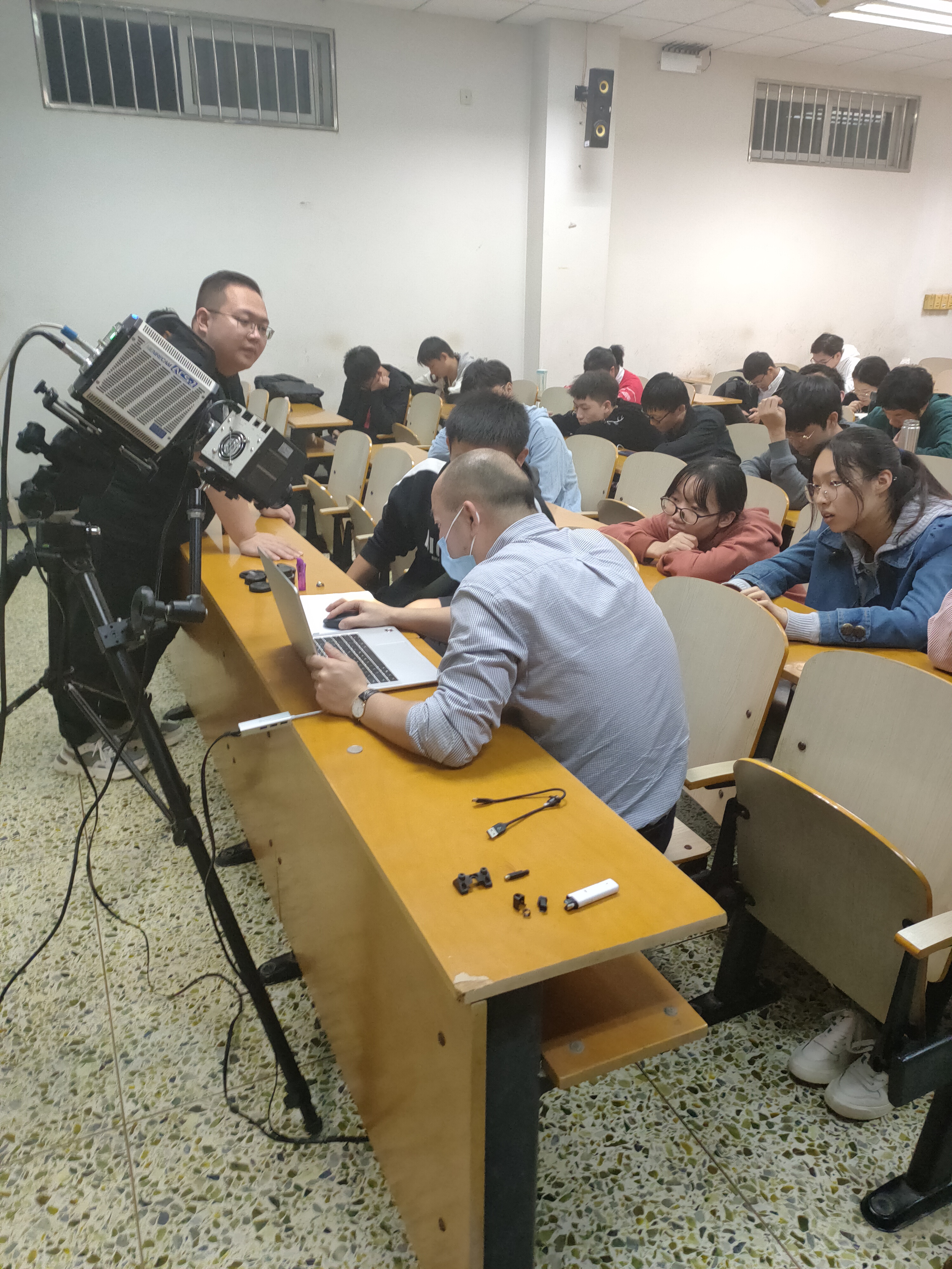 在本次課堂中,我公司的工程師對(duì)高速攝像機(jī)的原理、發(fā)展歷程及應(yīng)用范圍進(jìn)行了詳細(xì)的講解。工程師專業(yè)知識(shí)水平、詼諧活躍的課堂氛圍,激發(fā)了學(xué)生對(duì)高速攝像機(jī)的興趣。受同學(xué)們的熱烈要求,我公司工程師還直接在本次課堂上進(jìn)行了一個(gè)高速小實(shí)驗(yàn)的拍攝演示。